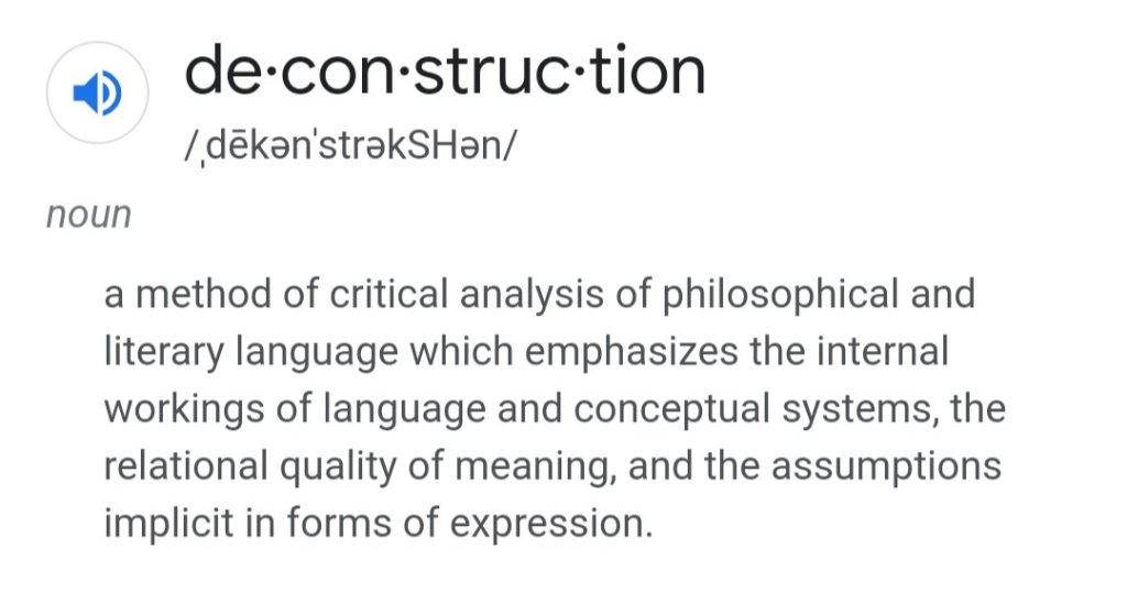 And what word/phrase could be used in place of “deconstruction” that will not be demonized in a week by those defending the status quo? I submit there isn’t one. It’s the substance they hate. Just look at the books they’re critiquing?